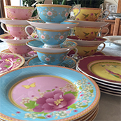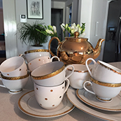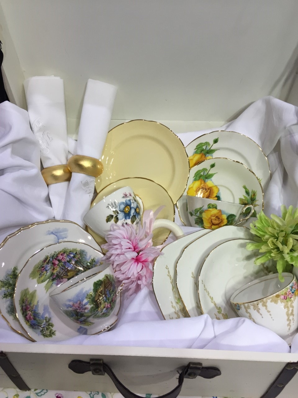 This tea set is ideal for the traditional High Tea experience. Each cup has its own story to tell and makes anyone sitting at this table feel like they have been transported in time. It is perfect for Kitchen Teas, Special birthday celebrations, Baby showers or special events such Engagements or Weddings.
